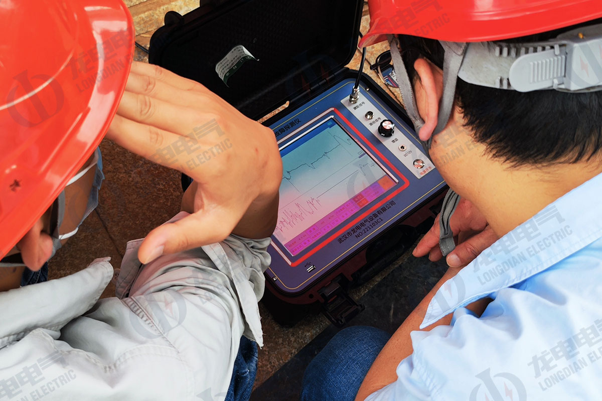 武漢龍電電氣技術團隊成功為湖北重工客戶定位了地埋10K電纜的故障點,該故障點位于水泥鋪設的管道內。在高壓閃絡時,近10米范圍內全是啪啪啪的響聲。技術團隊通過聲磁同步加震動分析定位,將故障點精確定在30厘米范圍內,大大減少了開挖工程量和費用,贏得了客戶的高度贊揚。